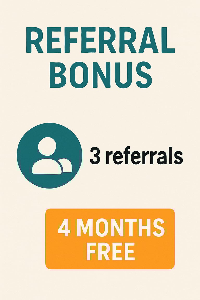 Earn free months by referring friends to our service. More referrals mean more savings!